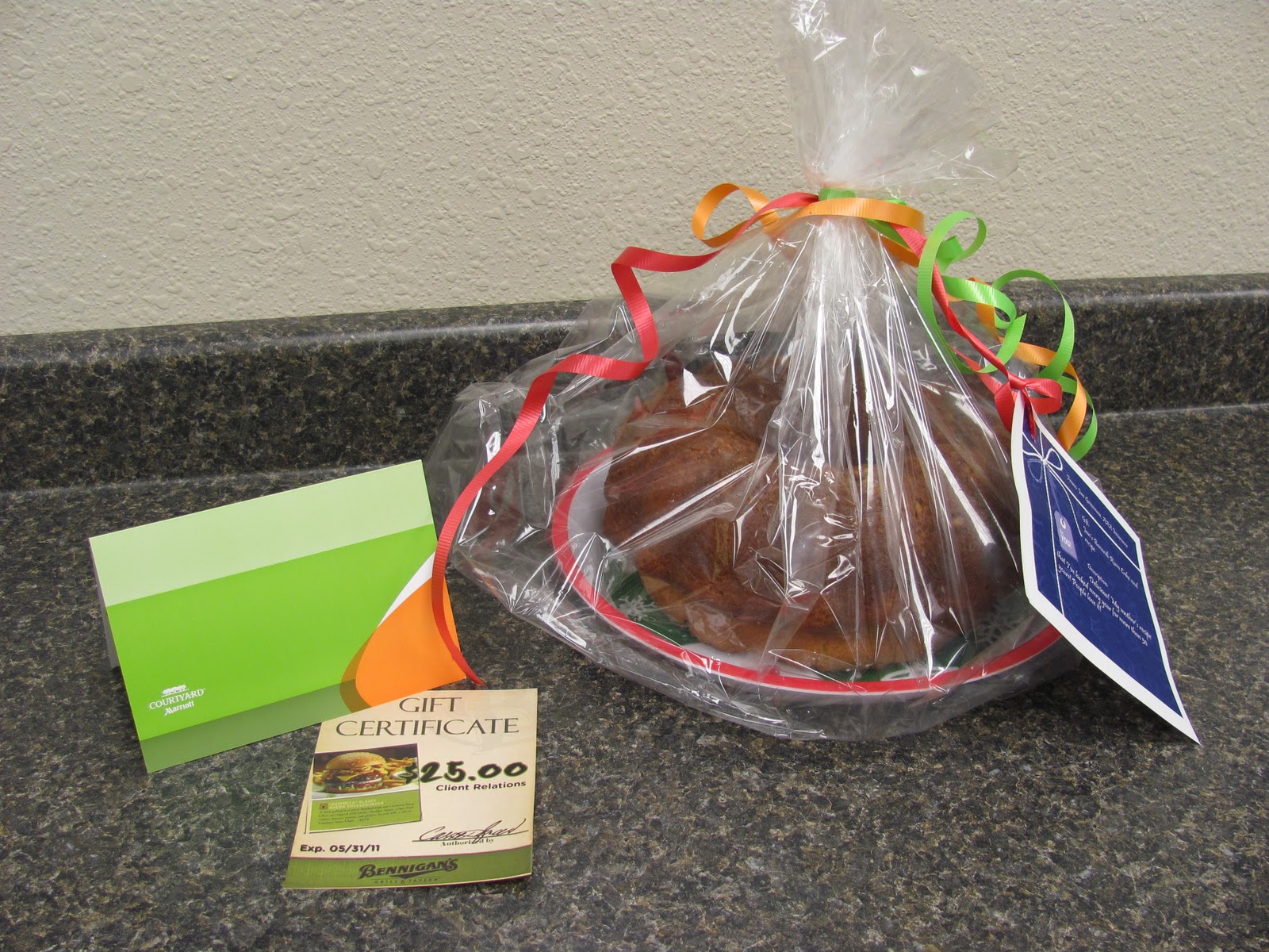 Last night at the Women's Network "My Favorite Things" party I won 2 gifts! I won a Bacardi Rum Cake made by Jan Grossman, a past President of Women's Network. We cut into it this morning for breakfast and I am pretty sure I could get a DWI from one piece! Holy mother of Bacardi!!! Wow! Jan, you are a wild woman! I also won a $25.00 gift card to Bennigan's! It was a great time and I love visiting with everyone! Great job Women's Network and everyone involved in the planning of this great party! Hope this tradition keeps going!